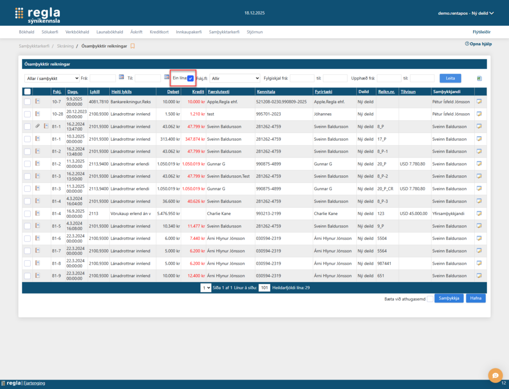 Samþykktrakerfi Reglu gerir fyrirtækjum kleift að samþykkja rafræna reikninga, handfærðar bókhaldsfærslur og innkaupareikninga með skilvirkum hætti.