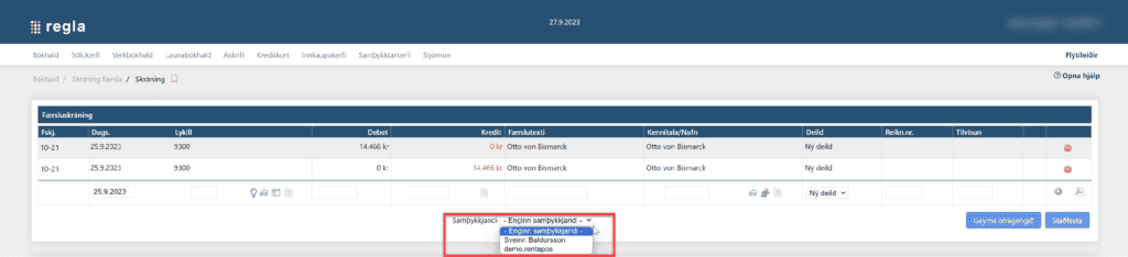 Nýleg virkni býður upp á það að bæði er hægt að samþykkja reikninga og ákveðnar færslur. Einfalt er að taka kerfið í notkun og stilla upp samþykktarferli og samþykkjendum.